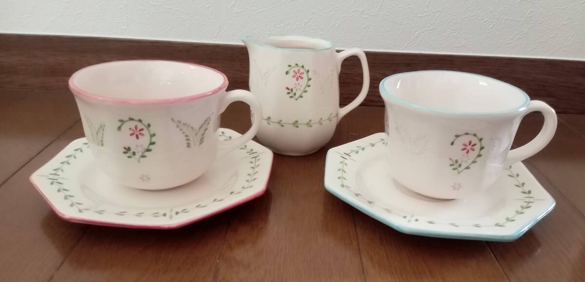 - Afternoon Tea アフターヌーンティー ペア カップ&ソーサー &クリーマー ハンドペイント ポルトガル コーヒーカップ hand painted
