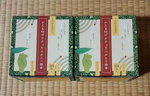 - 蚊取り線香 かえる印のナチュラルかとり線香 日本製 30巻 2個セット 合計60巻 無添加・無化学・無着色・農薬不使用 天然成分 未使用品