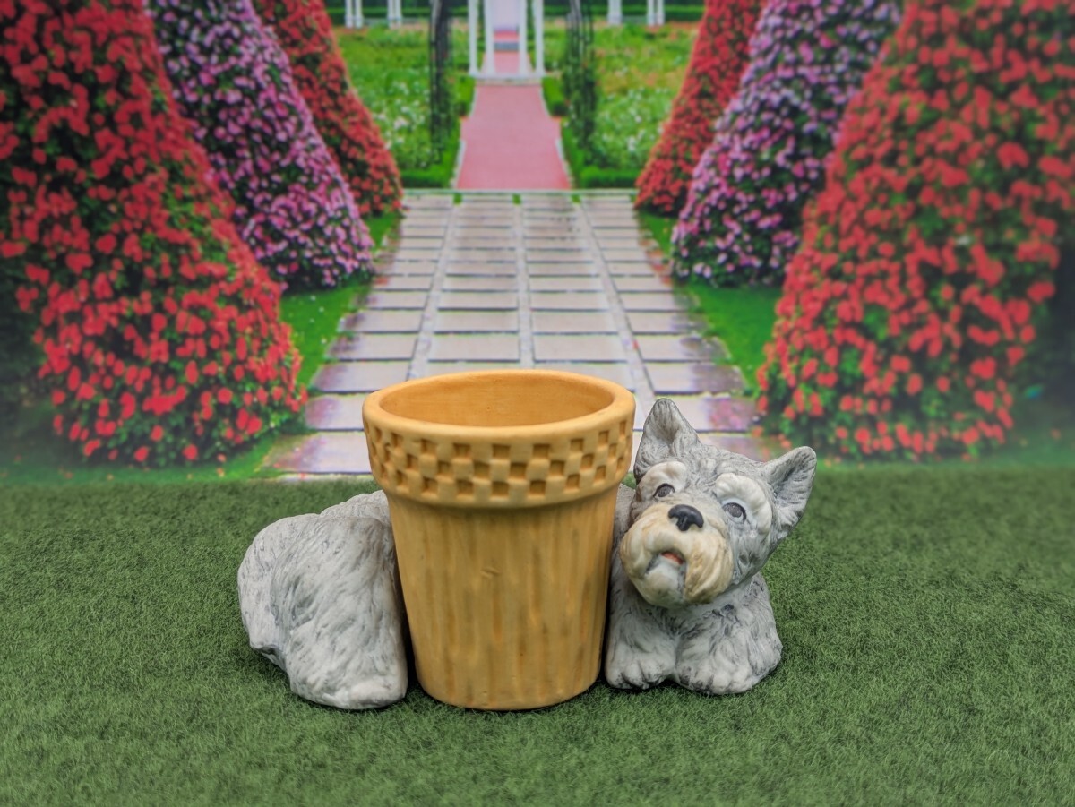 - 陶器製 犬の置物 シュナウザー 小物入れ