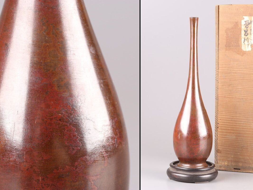 - 古美術 古銅造 龍文堂 安之介造 曽呂利 花生 花瓶 共箱 時代物 極上品 初だし品 D4352