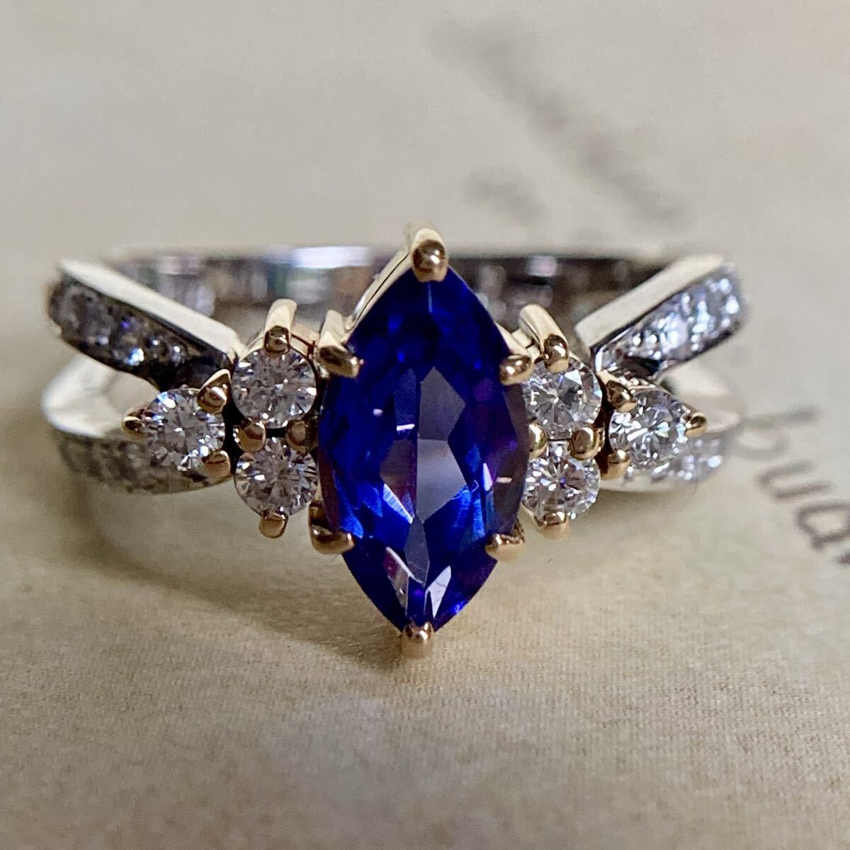 - pt900 k18マーキスカットタンザナイト ダイヤモンド 指輪 リング 指輪