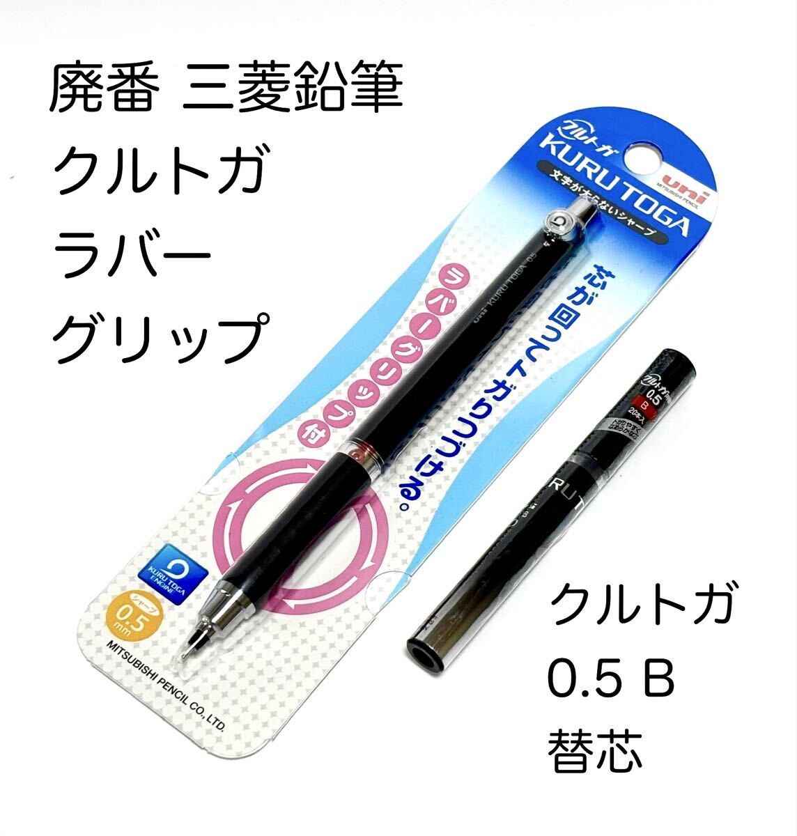 - 送料無料 廃番 三菱鉛筆ユニ クルトガ ラバーグリップ付 黒 0.5シャープペンシル、クルトガ用替芯 0.5 B 未開封 MITSUBISHI uni KURU TOGA