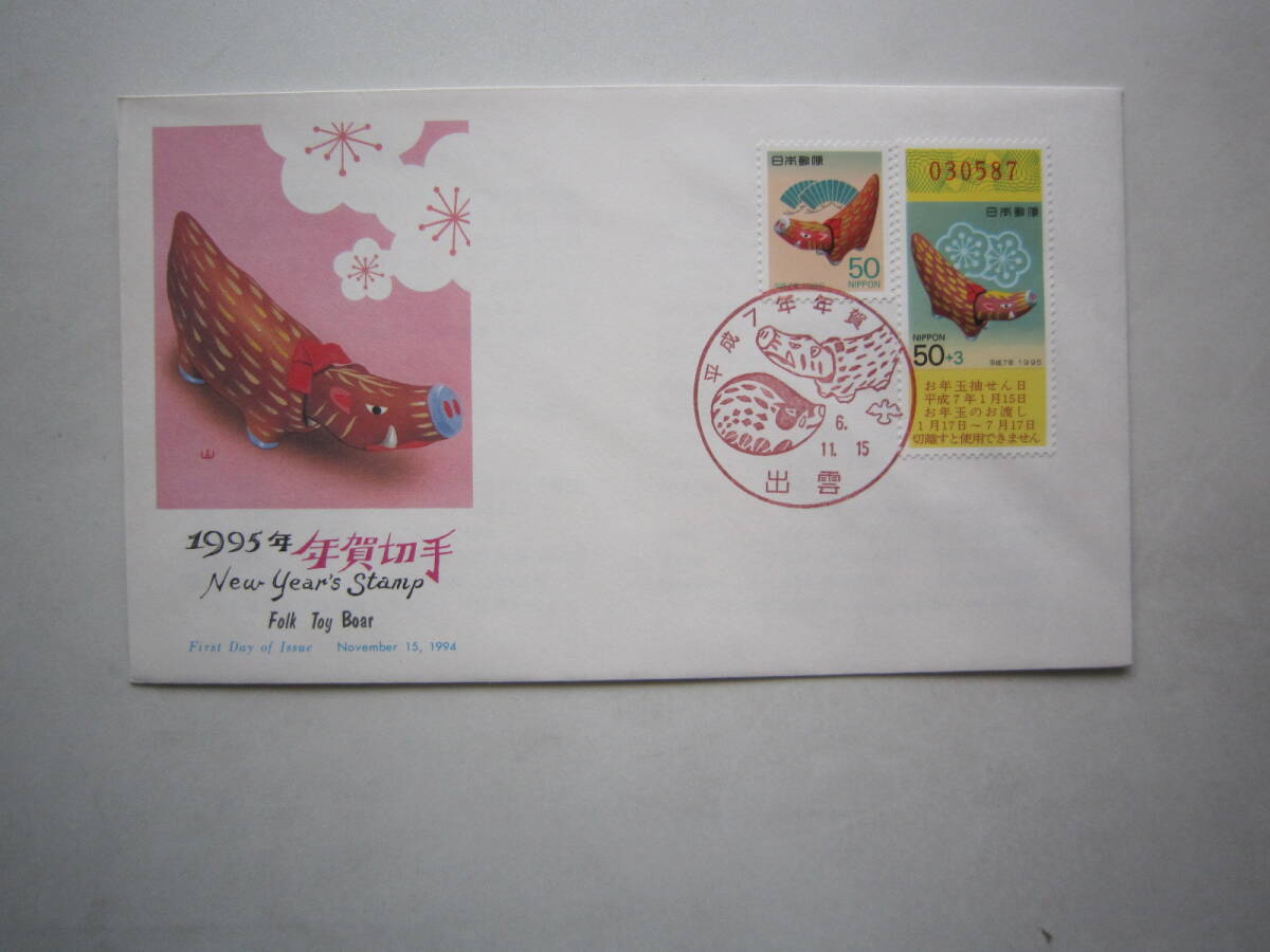 - ●初日カバー 1995年年賀切手 出雲張子・亥●
