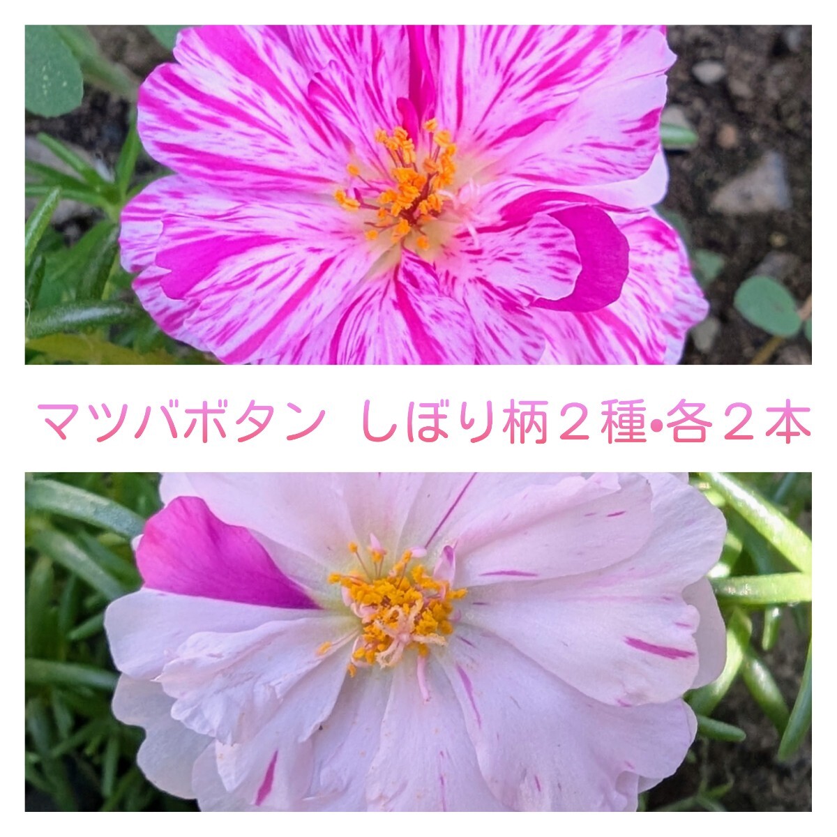 - マツバボタン 挿し芽 八重咲き絞り柄2種を各2本ずつ