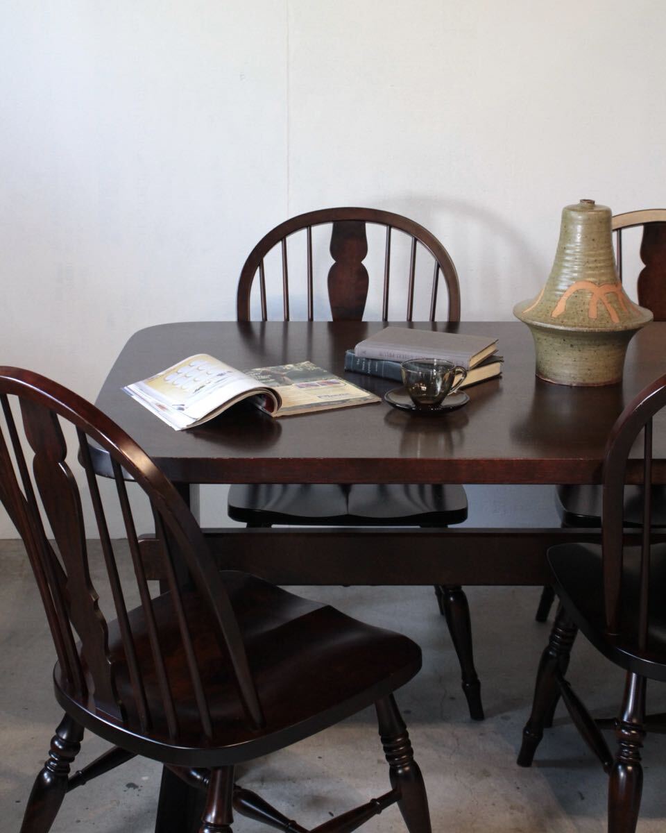 - 北海道民芸家具 幅150cm 4人用 木製 ダイニングテーブル ジャパニーズモダン 食卓机 昭和レトロ キツツキマーク 飛騨家具 喫茶店 14319