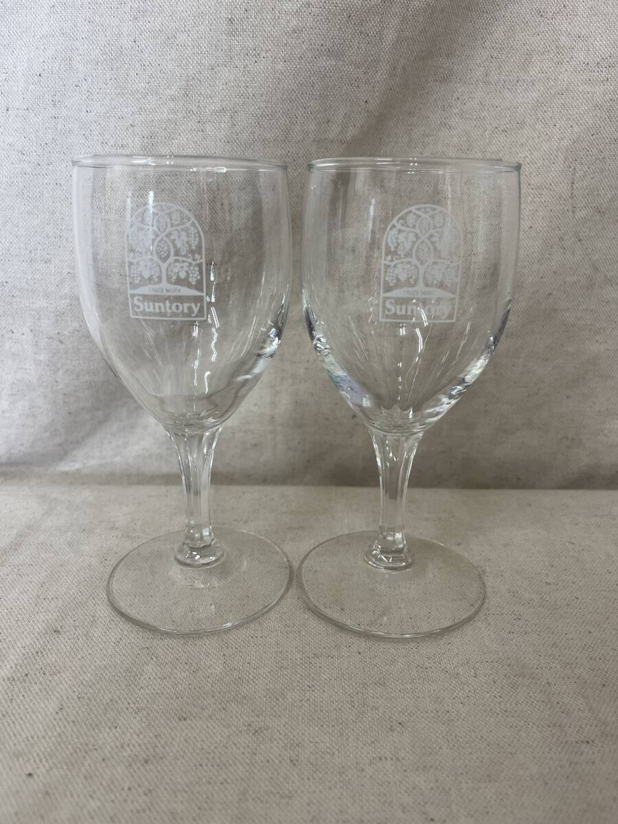 - ☆ 美品!【サントリー】 ロゴ入りワイングラス 高さ約147㎜ 2客 ☆彡