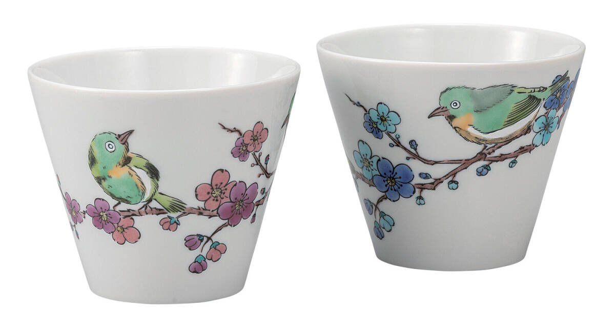 - 九谷焼! ☆めじろに梅・ペア焼酎カップ☆ K9-1133 新品 酒器 酒盃 サカズキ 杯 お猪口 馬上杯 アルコール ギフト