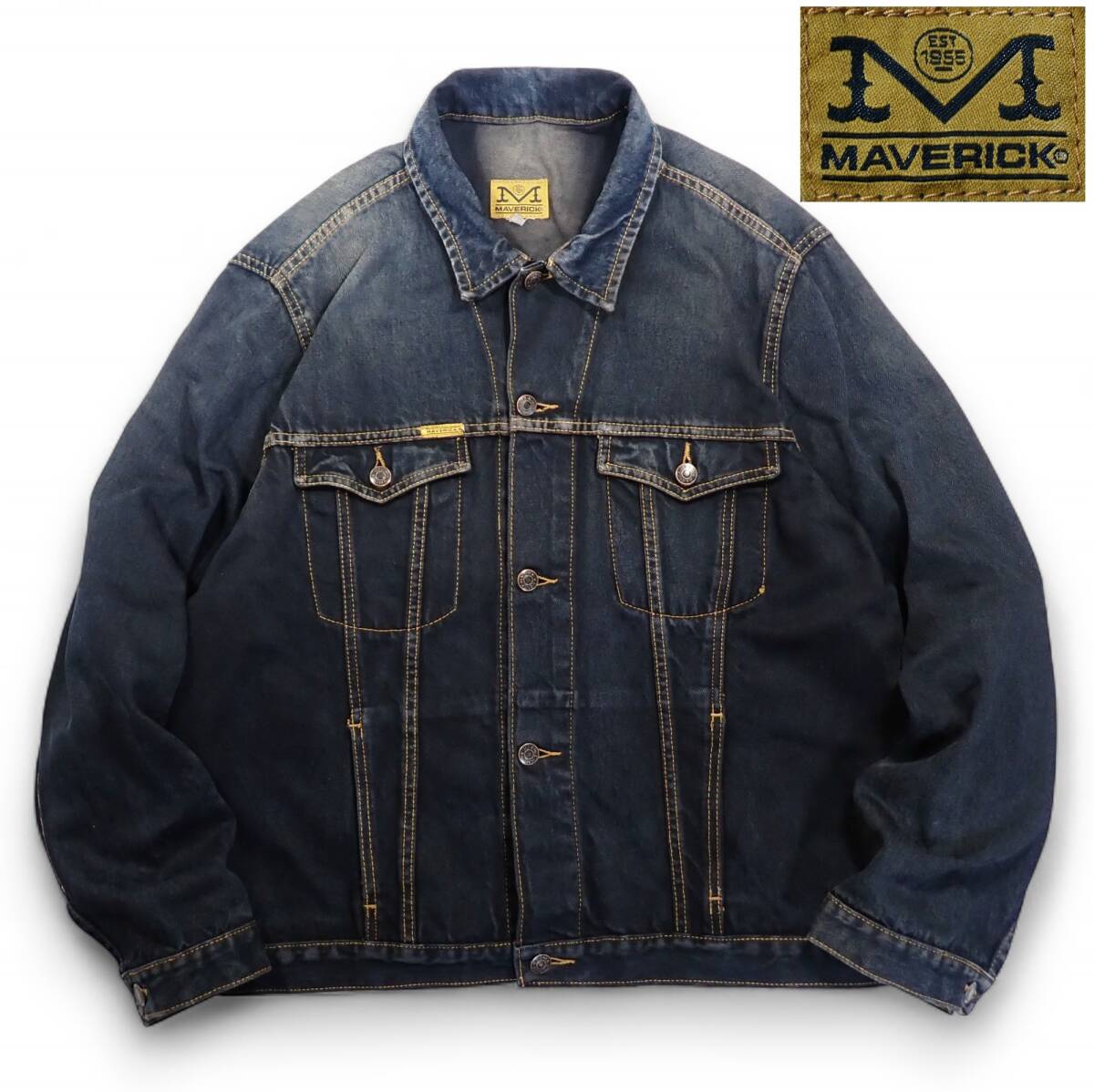 - 7045/MAVERICK 後染めブラック デニム ジャケット XL●フェイド感雰囲気◎黒 マーベリック Gジャン ジージャン トラッカー●洗濯済●古着