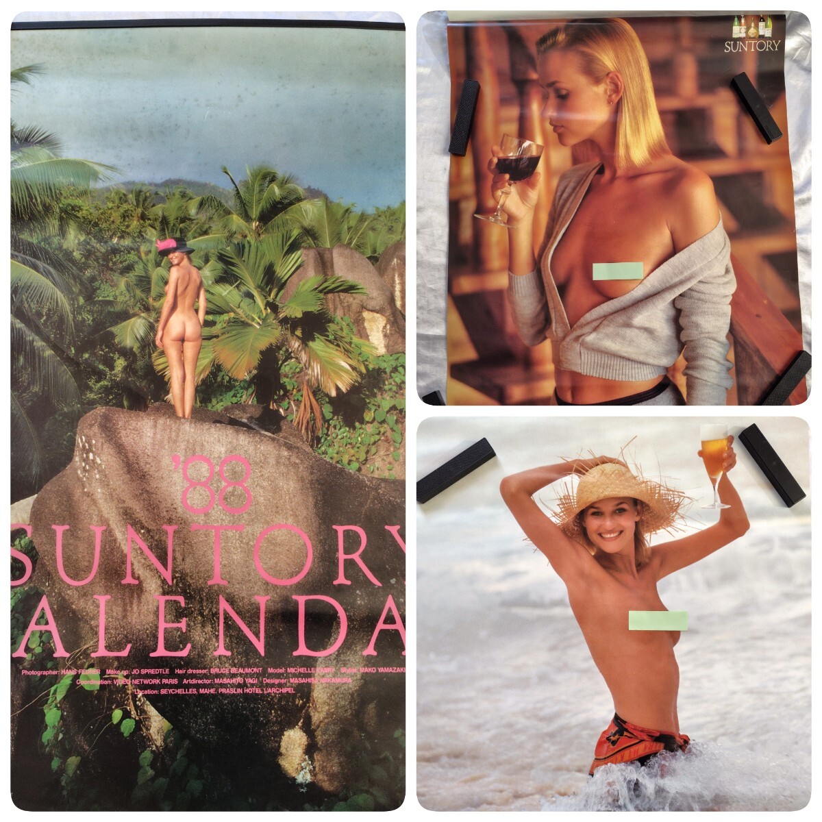 > 1988 SUNTORY CALENDAR サントリー カレンダー 当時物 企業物 レトロ MICHELLE EABRY 約51.5cm ×約73.5cm【カレンダー0907-8】