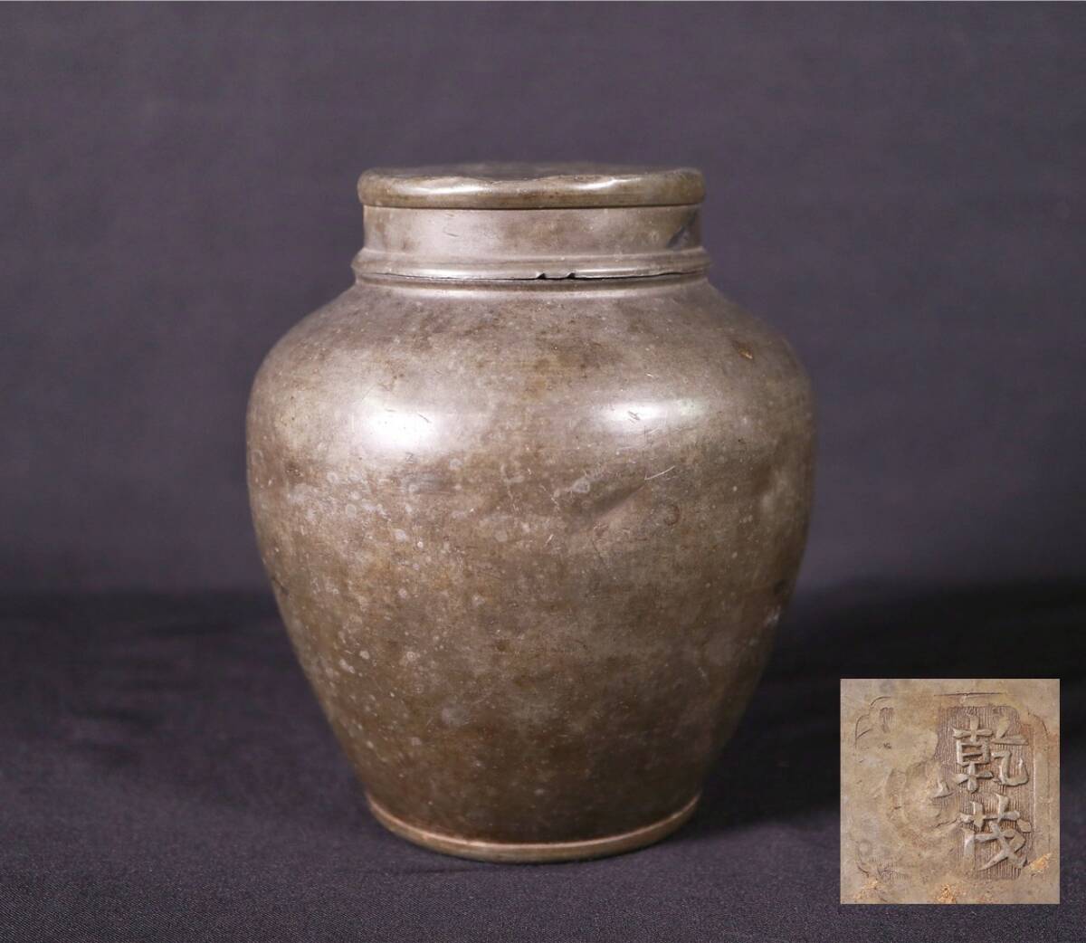 - 古錫 乾茂號造 斑紋 茶入 時代 茶壺 唐物 斑錫製 茶心壷