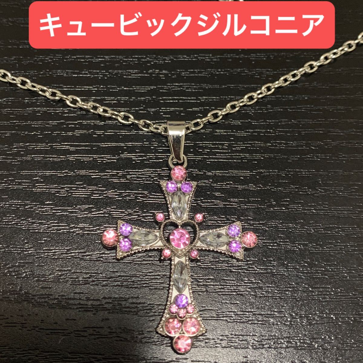 - 地雷系 キュービックジルコニア パープル×ピンク 十字架 ペンダント ネックレス