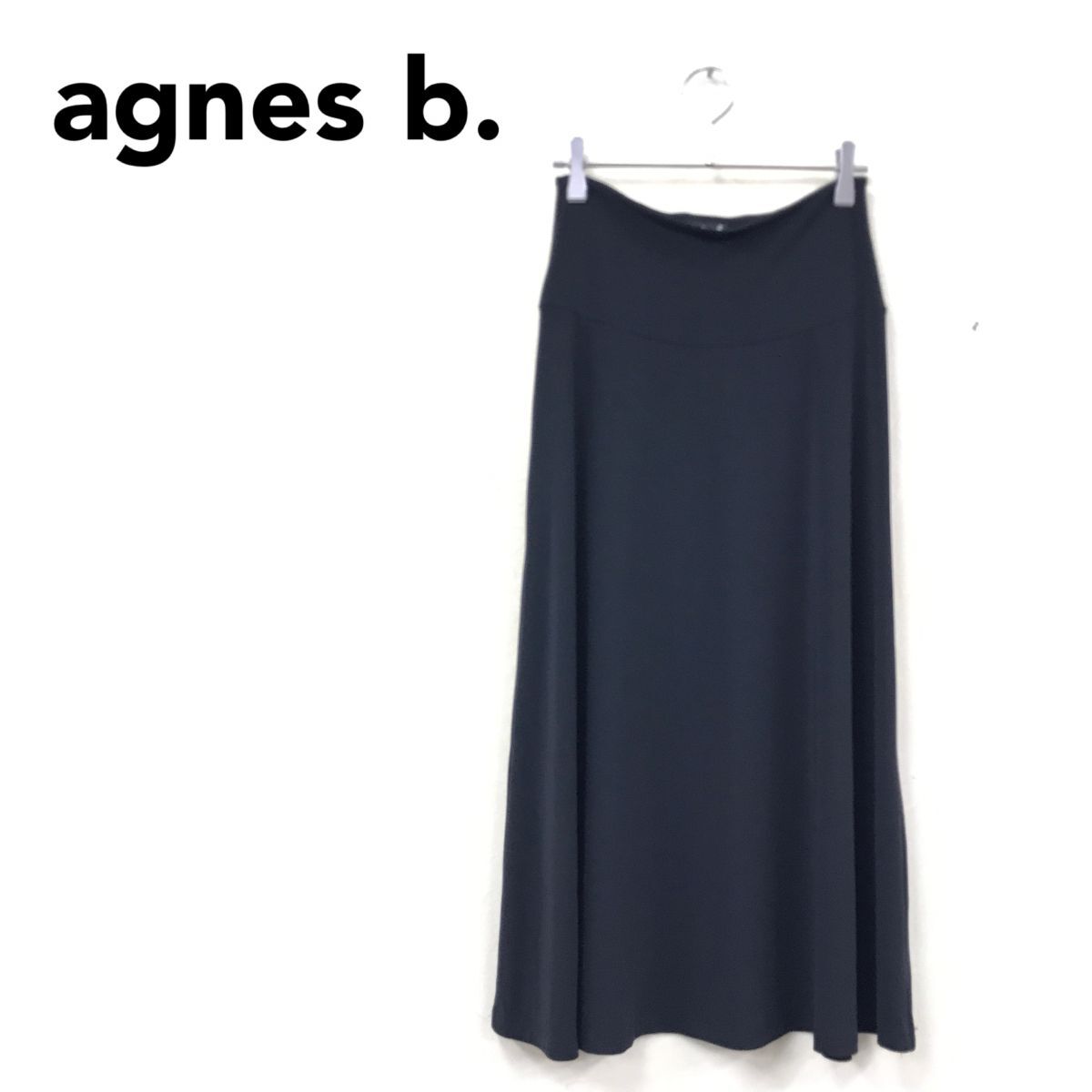 > 2K1799-R◆フランス製 agnes b. アニエスベー 膝丈フレアペチスカート◆サイズ1 レディース 婦人 ボトム ストレッチ 薄手 ブラック 黒