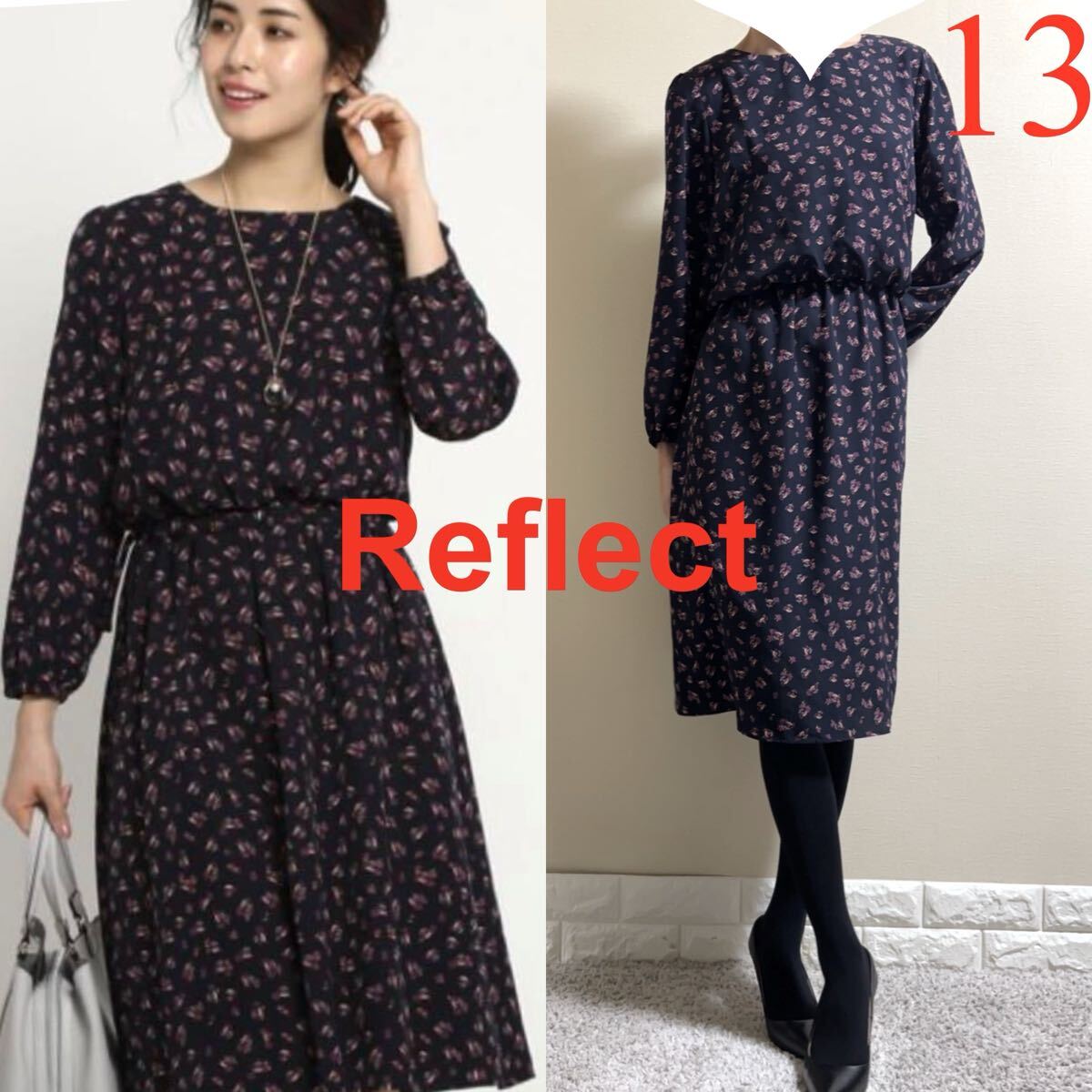- 大きいサイズ!Reflect リフレクト 定価29,700円 洗える 花柄 フローラル 小花柄 ワンピース 13 XL 濃紺 日本製 秋冬春