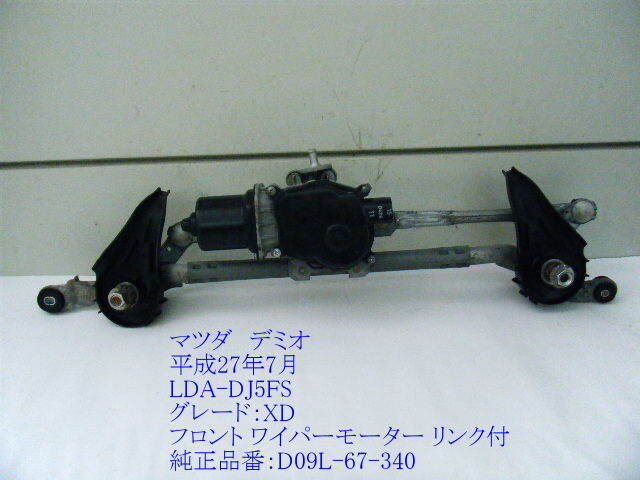 > ◆DJ5FS DJ3FS マツダ デミオ H27年 フロント ワイパーモーター リンク付 D09L-67-340 純正 [14194]