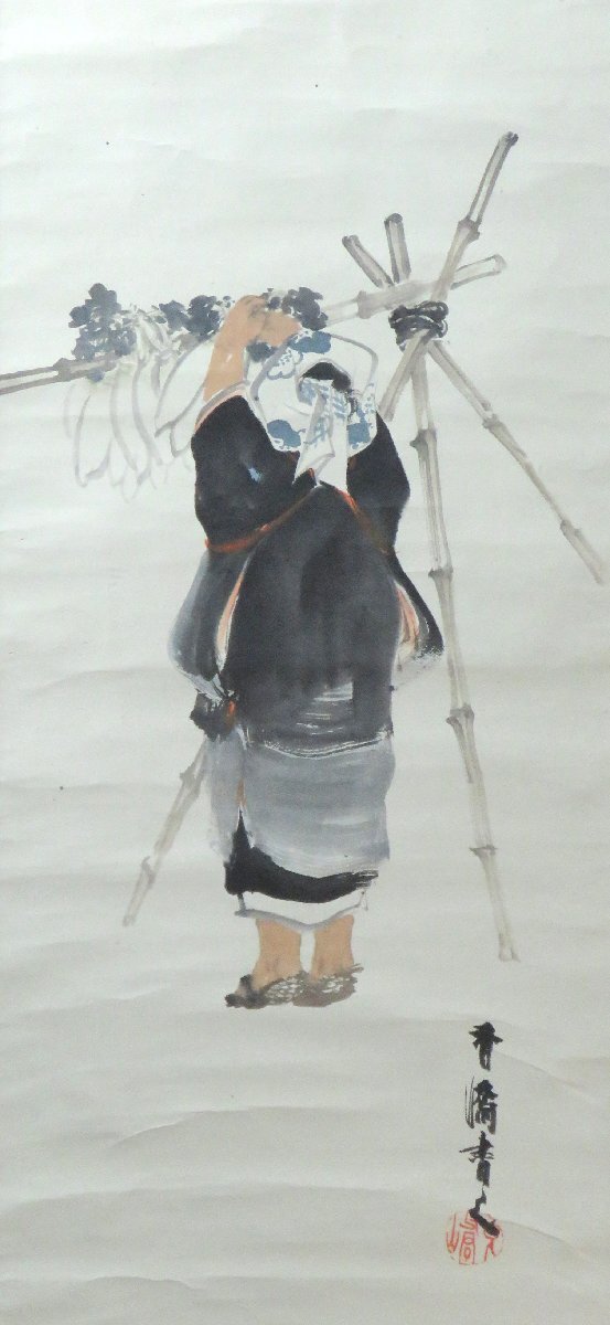 > ◆◇掛軸 谷口香 小春日和図 半切立 物故作家掛軸 hanging scroll◇◆冬 風俗画 JY1716