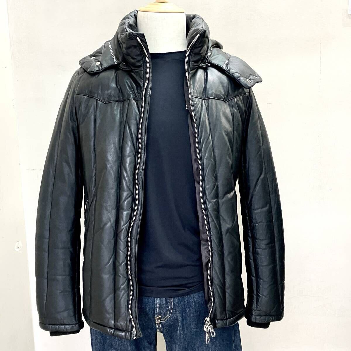 - 中古AB バックボーン BACKBONE 鹿革 ディアスキン レザー ダウン ジャケット BC08FWL-B01 size S ブラック メンズ 150074