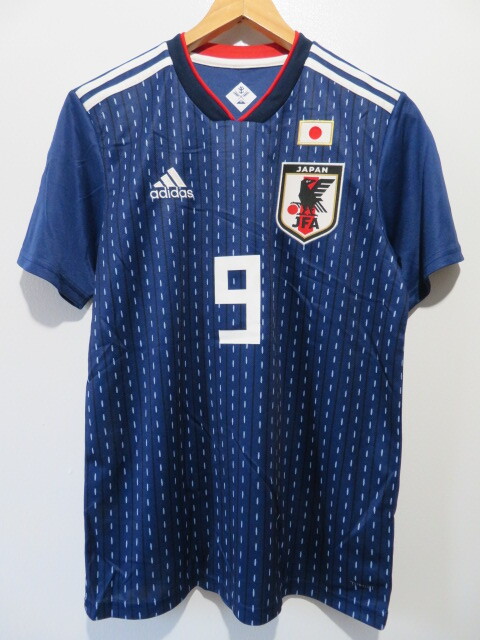> ☆美品 サッカー日本代表 レプリカユニフォーム #9 岡崎慎司 adidas アディダス 正規品 ロシアワールドカップ サムライブルー M☆