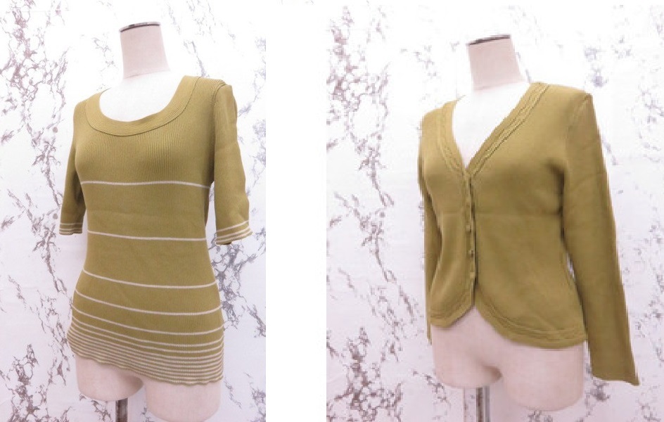 - 05*【中古】*leshabits ニット アンサンブル カーディガン 緑系 レターパック可