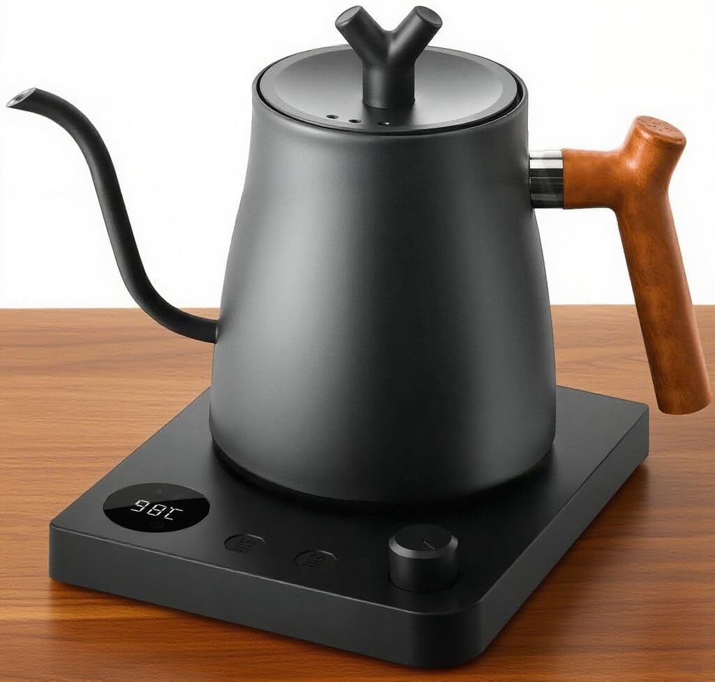 - 電気ケトル コーヒー ドリップケトル 1.0L 約36分保温 800W 火傷防止 温度調節 (1℃単位)/空焚き防止/通知音オン・オフ/PSE認証済み