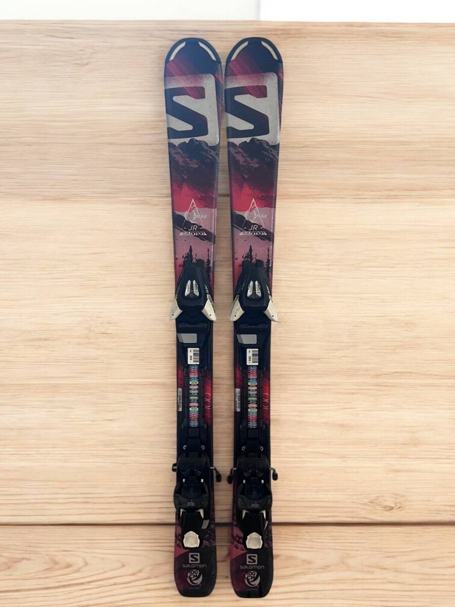 - サロモンセット/Qマックス Jr/ジュニア100cm+金具付きスキー/salomon