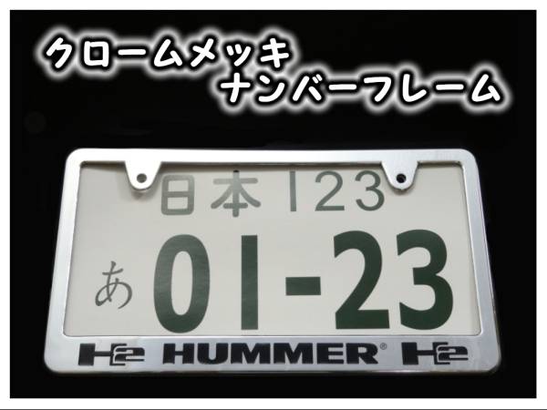 - ★クロームメッキナンバーフレーム ハマーH2ロゴ 2枚 Hummer★