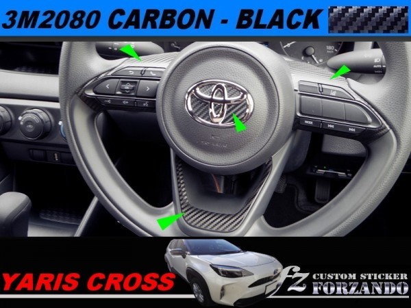 > ヤリスクロス ステアリングパネルカバー 3M2080カーボン調 ブラック 車種別カット済みステッカー専門店fz MXPJ10 MXPB10