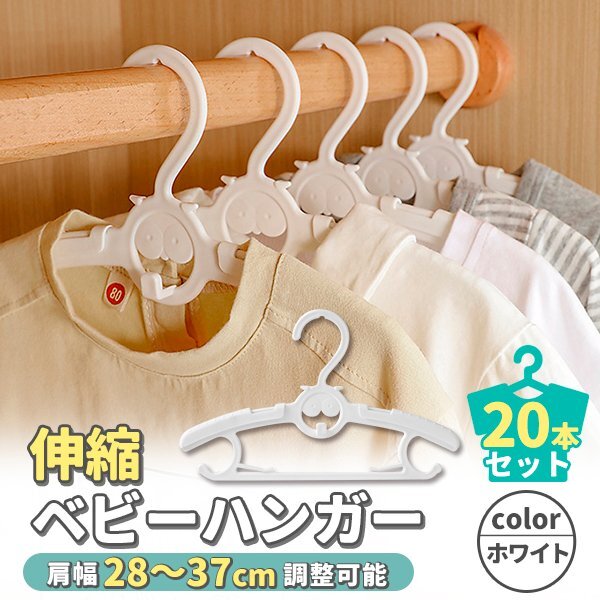- ベビーハンガー 20本セット 滑らない 伸縮 赤ちゃんハンガー ホワイト 白 キッズ 子ども 赤ちゃん ベビー服 すべらない シャツ Tシャツ