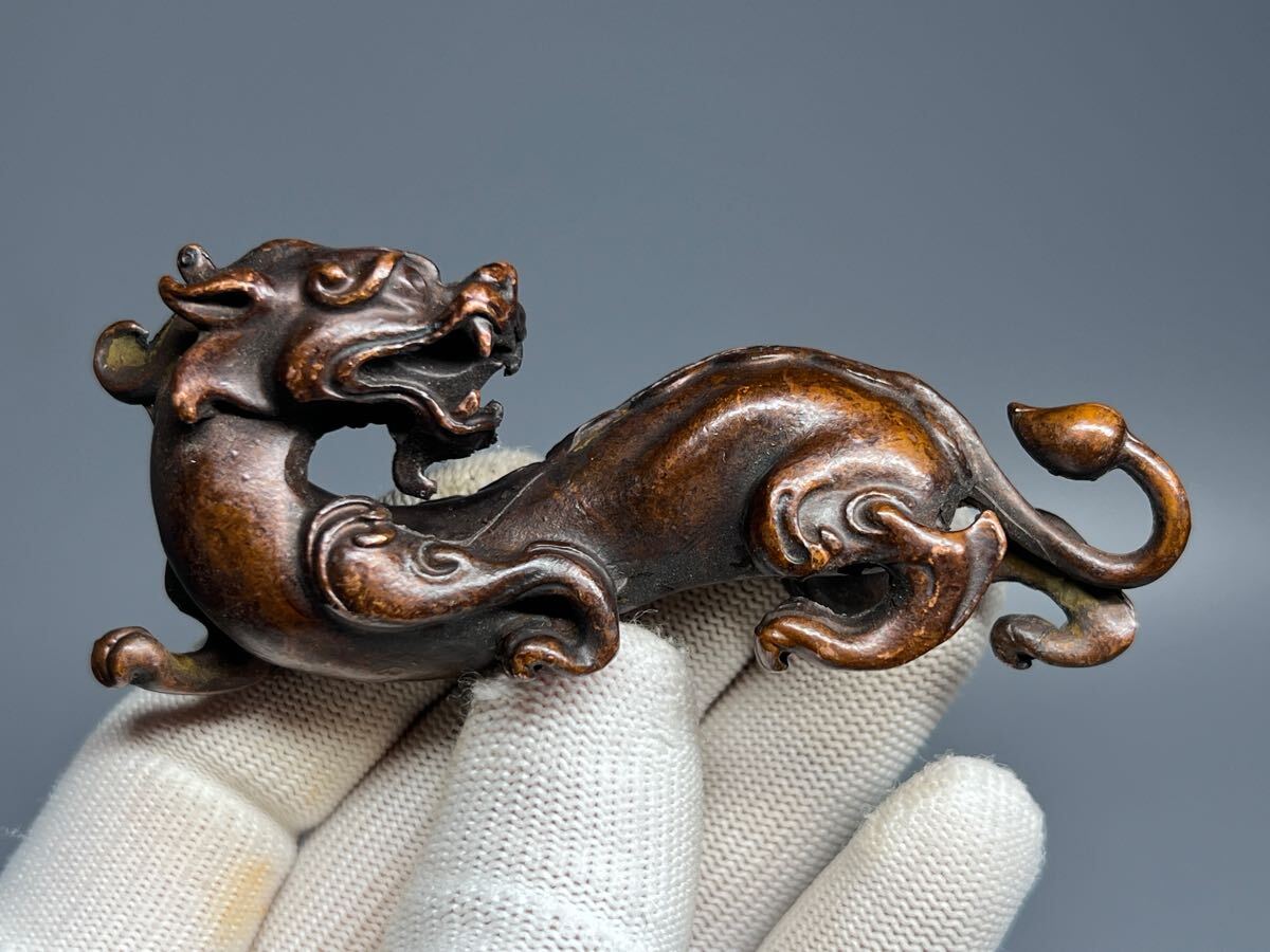 - 古美術 古銅 金属工芸 竜 置物 文鎮 茶道具 厚重 コレクション 細工 古道具
