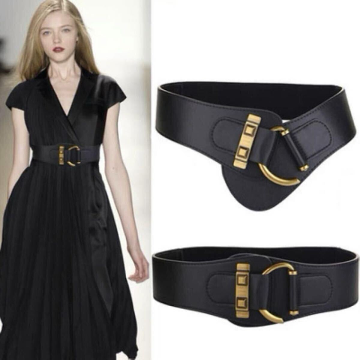 - ベルト レディース 8cm 本革 ストレッチベルト 太ベルト 黒 ブラックコルセット サッシュベルト