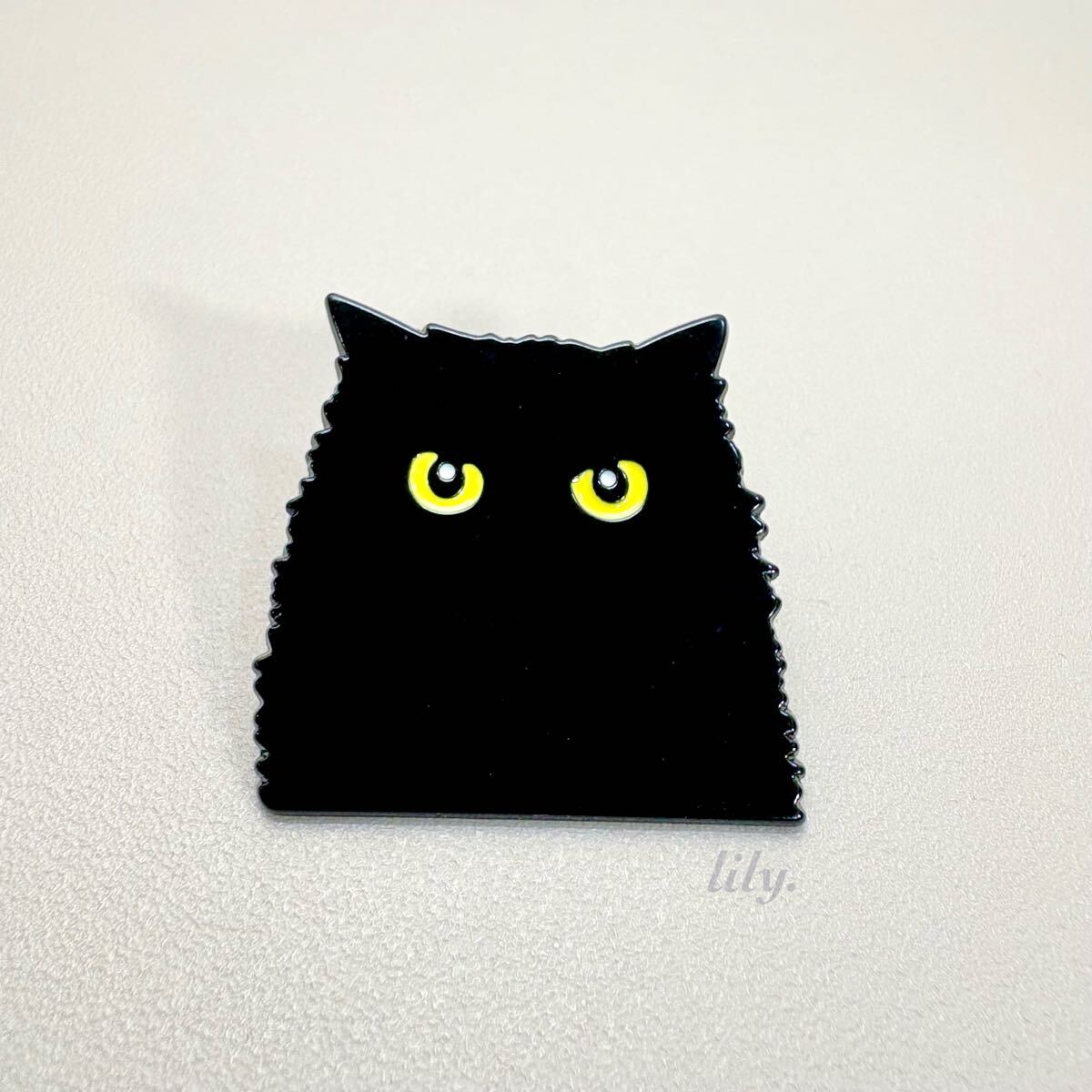 - 【ピンバッジ】こちらをじっと見つめる黒猫