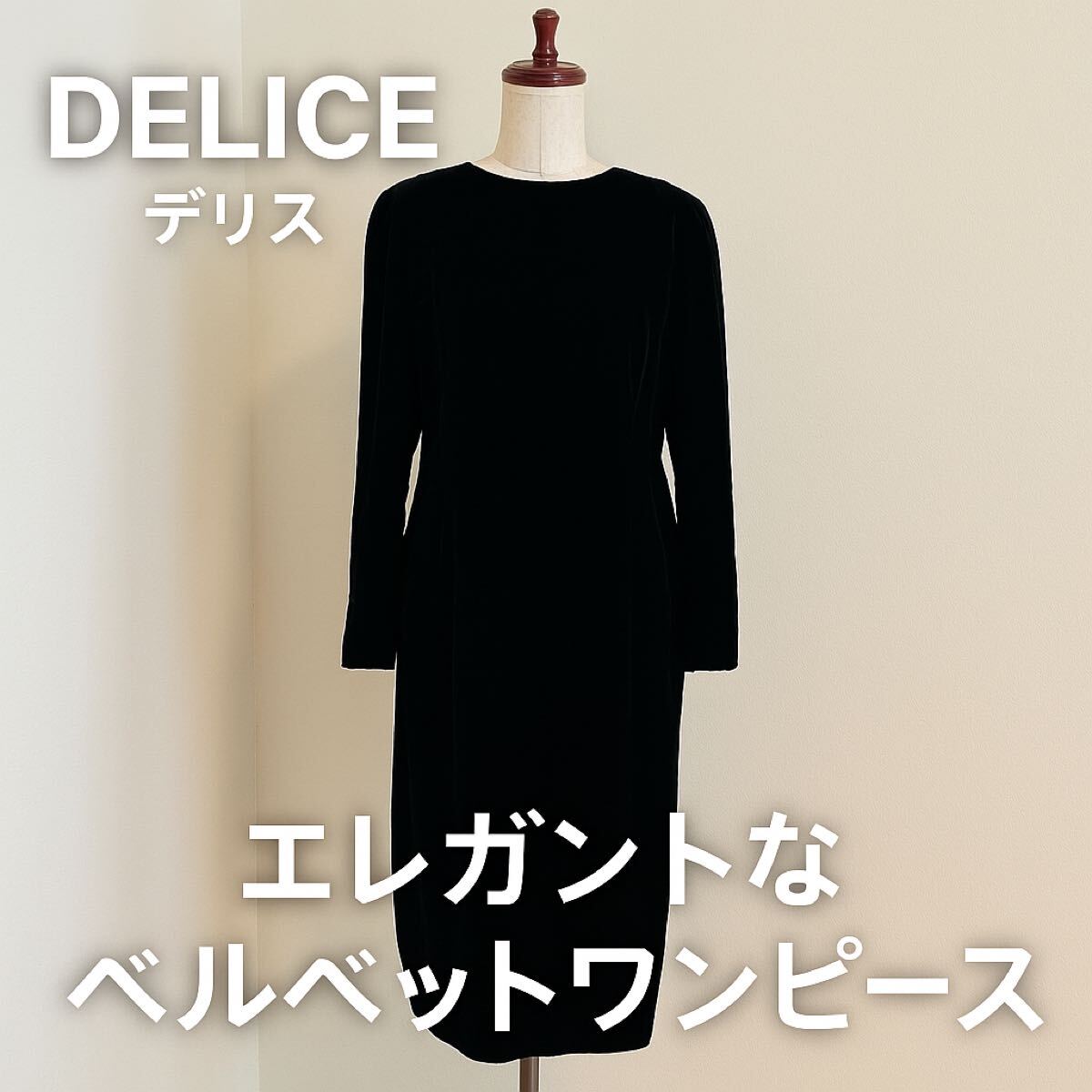 - DELICE デリス 黒ベルベット ロングワンピース レース&リボン付きドレスXL