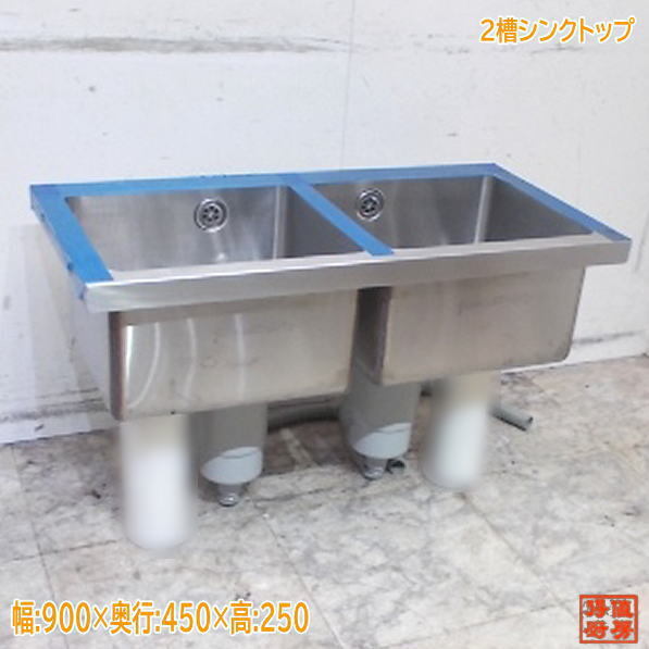 - ステンレス 2槽シンク 900×450×250 業務用2槽流し台 中古厨房/25J0304Z