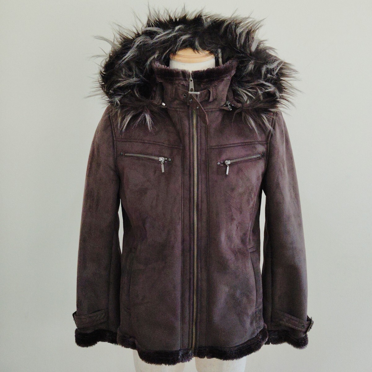 - A8/L/Journal Report メンズ ジャケット スエード 裏ボア フード着脱 ファー ダークブラウン