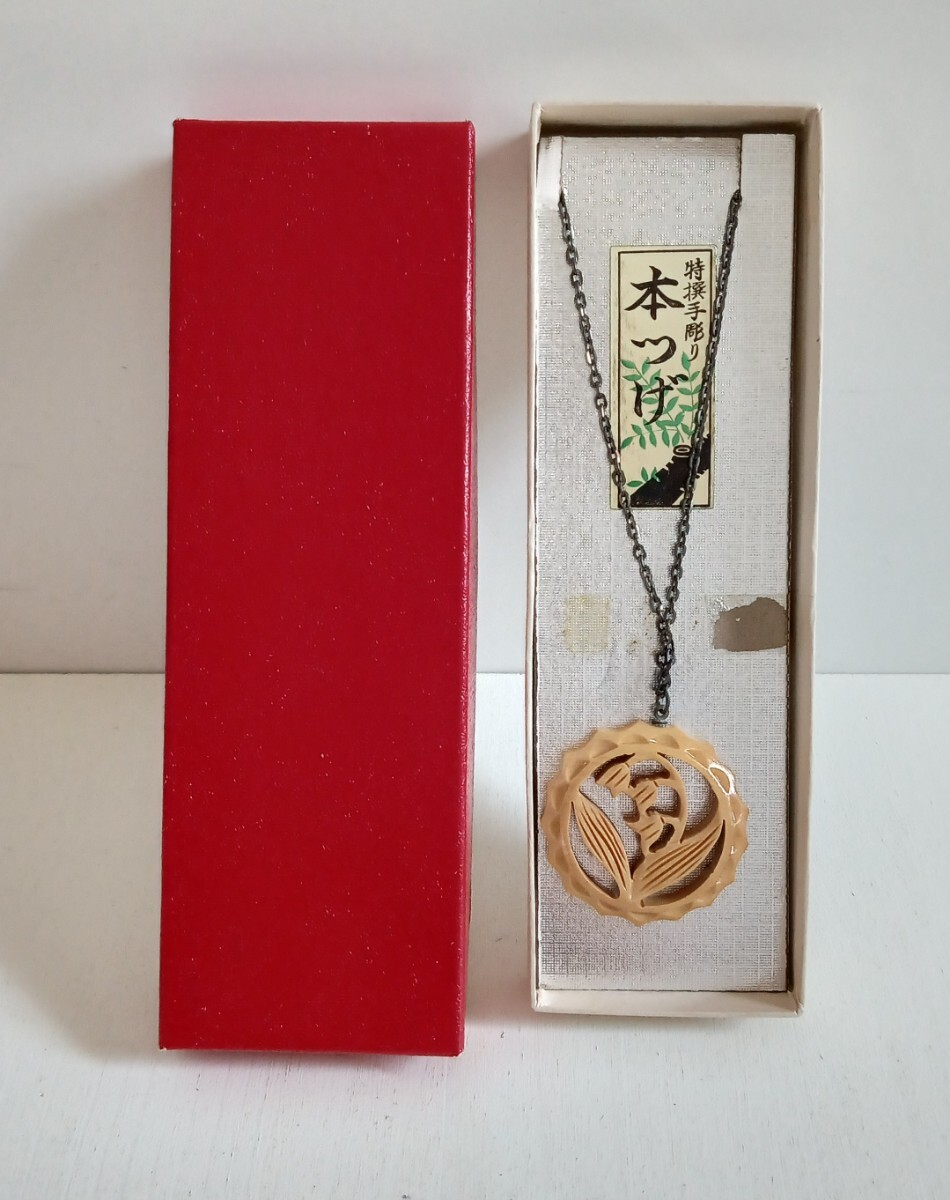 - 【 未使用 】 特撰手彫り 本つげ / ネックレス / 花モチーフ