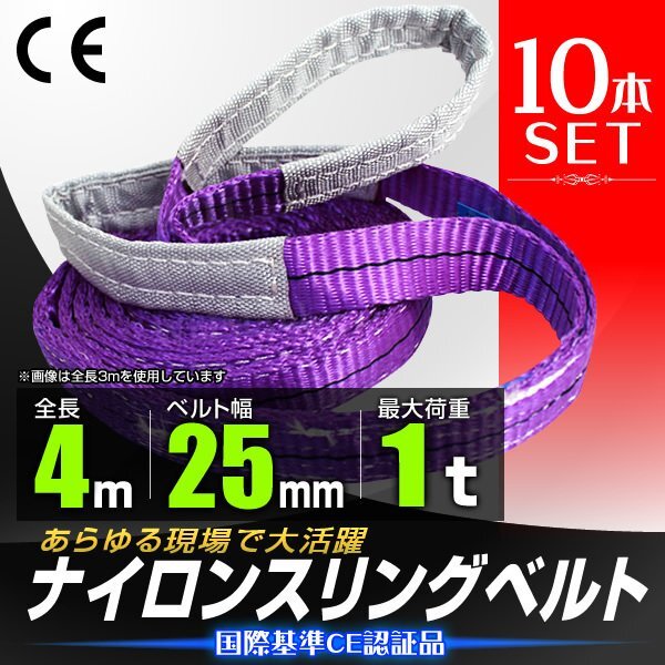 > 【10本セット】スリングベルト 耐荷1000kg 25mm×4m 新品 未使用 ナイロン ベルトスリング ベルト 荷吊り 牽引 玉掛け 荷揚げ 土木 建築