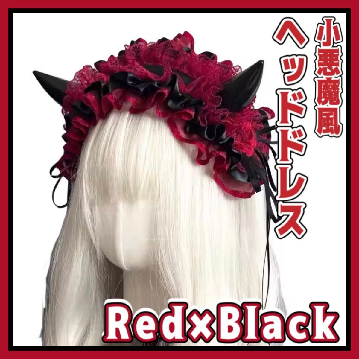 - ヘッドドレス ヘアクリップ レッド ハロウィン 小悪魔 フリル 原宿 仮装 コスプレ ゴスロリ サブカル メイドカフェ パーティー イベント