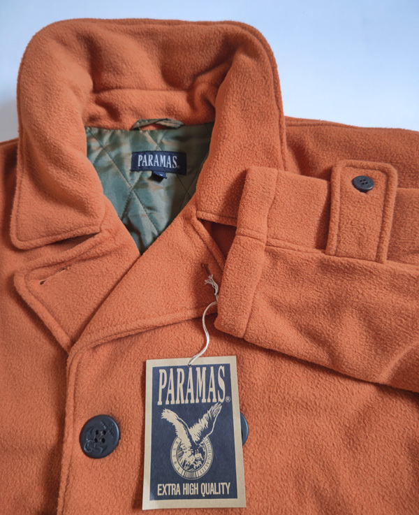 - ♪新古品♪フリース中綿 Pコート3(M)★柿色オレンジ★ ゆったりめ 裏キルティグ 緑よりの茶色