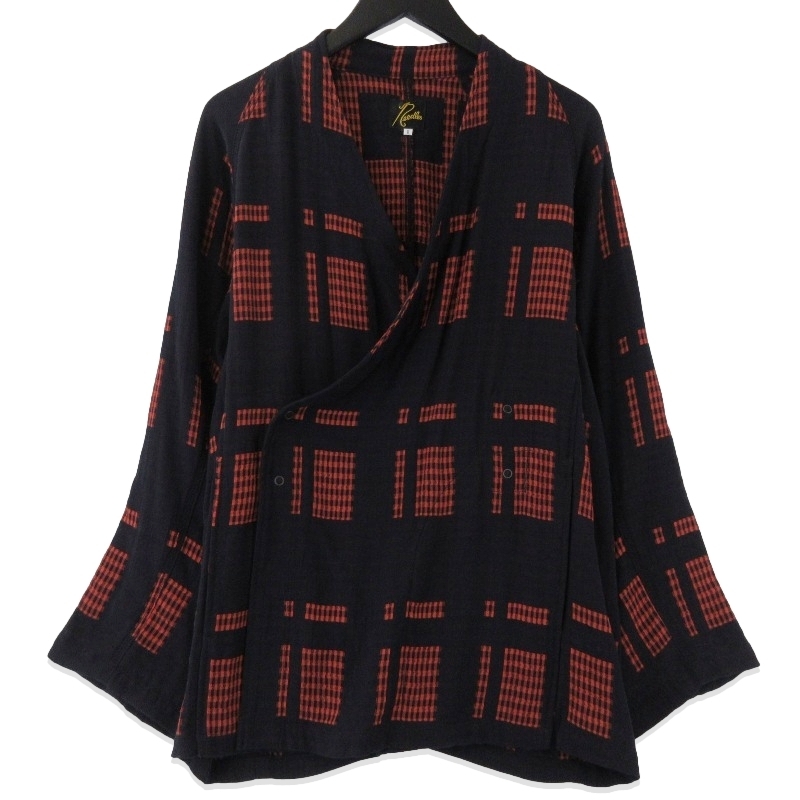 - 美品 Needles ニードルズ SAMUE JACKET R/C/AC GINGHAM PLAID JQ OT106 ギンガム 作務衣ジャケット ウィメンズ ネイビー 1 71013519