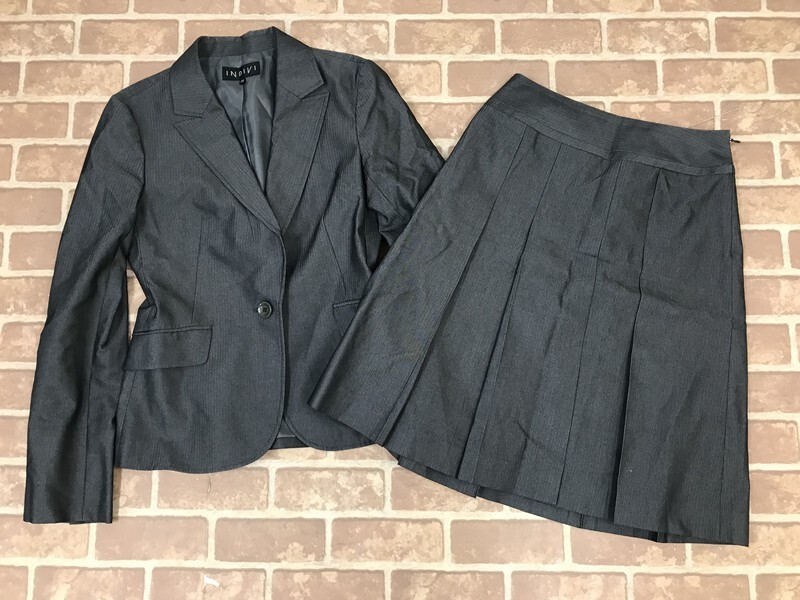 - 4458 レディース 【INDIVI】 セットアップスーツ2点SET / ジャケット・スカート サイズ:上38下36 色:グレー