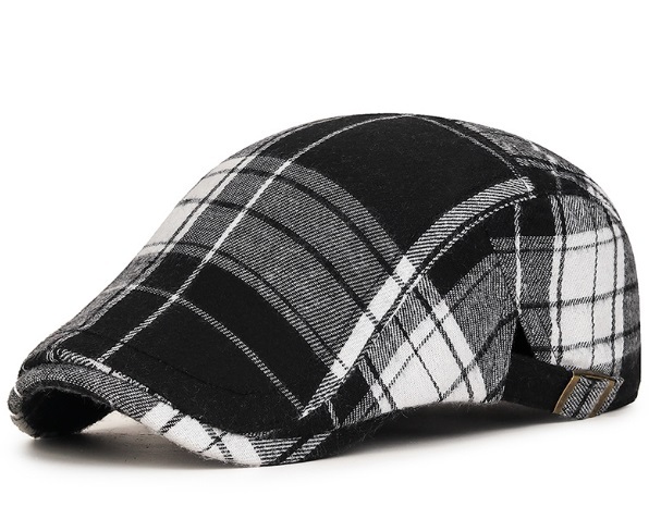 - 新販売 チェック柄 ハンチング ベレー帽子 メンズ 通気性抜群 ゴルフ 男女兼用 アメカジサイズ調整可 黒白
