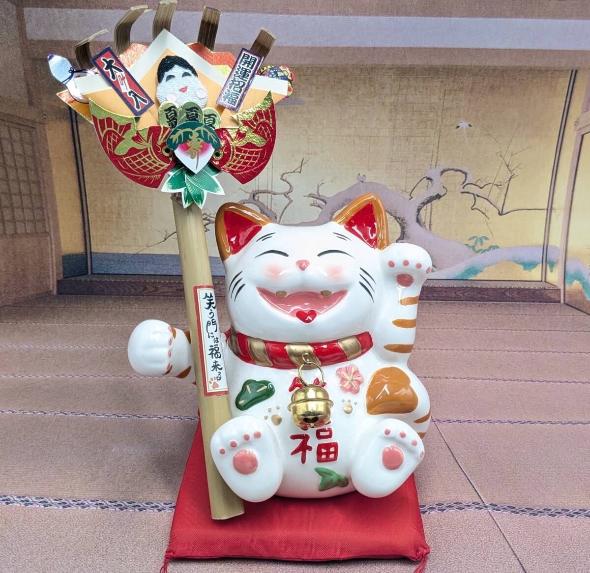 - 縁起物 招き猫 白雲笑助 小 笑う門には福来る 置物