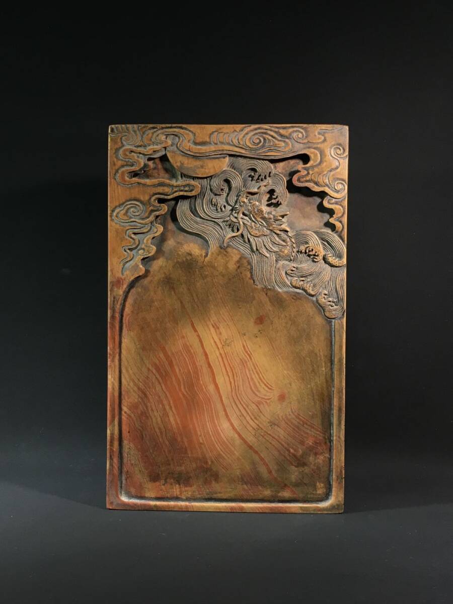 > 永し 清時代 在銘 端石彫 蛟龍出海 紅絲硯 端渓硯 極細工 書道具 文房具 置物擺件 古美術品 時代物 古董品 収集 旧家蔵出 中国唐物 A26