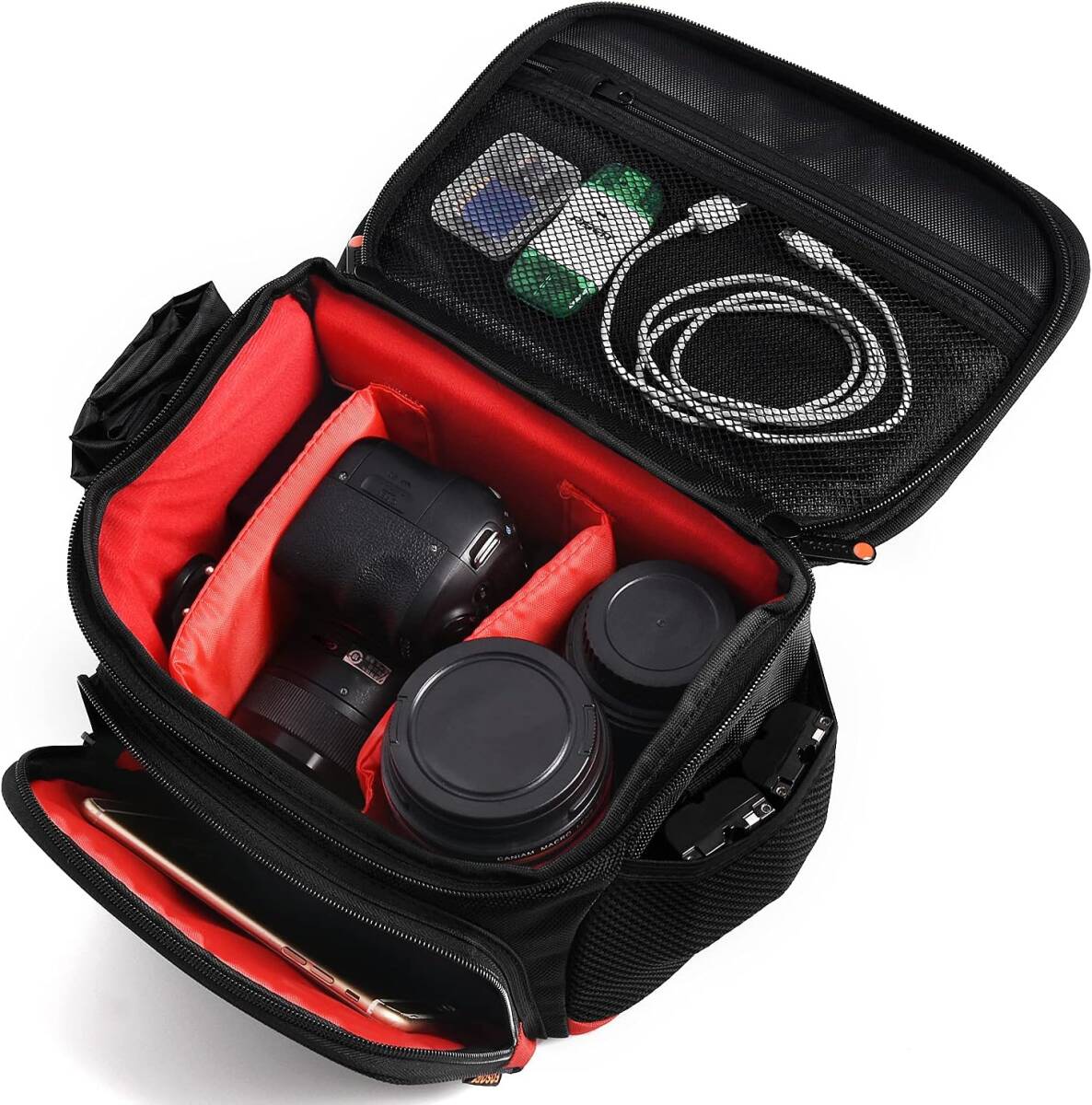 - 高品質 大型一眼レフカメラバッグ ショルダー型 ナイロン製 Red X-Larg