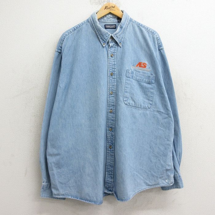 - XL/古着 ランズエンド 長袖 ブランド シャツ メンズ 90s AES 大きいサイズ コットン ボタンダウン 薄紺 ネイビー デニム 24n