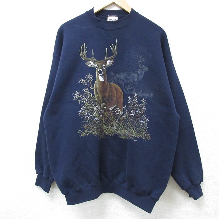 - L/古着 TULTEX 長袖 スウェット メンズ 90s シカ クルーネック 紺 ネイビー 25mar12 中古 スエット トレーナー トップス