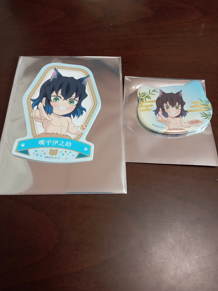 - ナムコ NAMCO 鬼滅の刃 ナンジャタウン ナンジャ ミニゲーム 特別任務賞 ねこ型缶バッジ C賞ステッカー 嘴平 伊之助