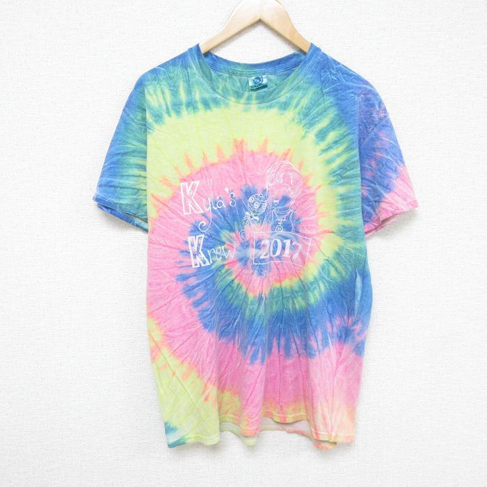 > L/古着 半袖 Tシャツ メンズ 女性 コットン クルーネック 黄他 イエロー タイダイ 24aug02 中古