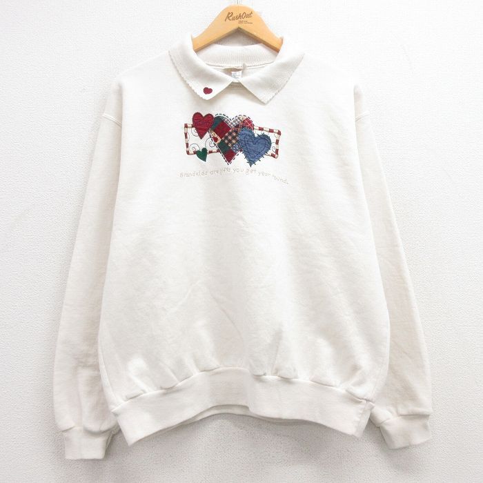 > 古着 長袖 スウェット レディース 00s ハート 刺繍 大きいサイズ 襟付き 生成り 25mar18 中古 スエット トレーナー トップス