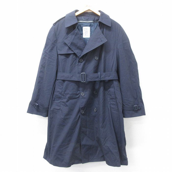> M/古着 長袖 ミリタリー トレンチ コート メンズ 90s ロング丈 紺 ネイビー 25jan31 中古 アウター