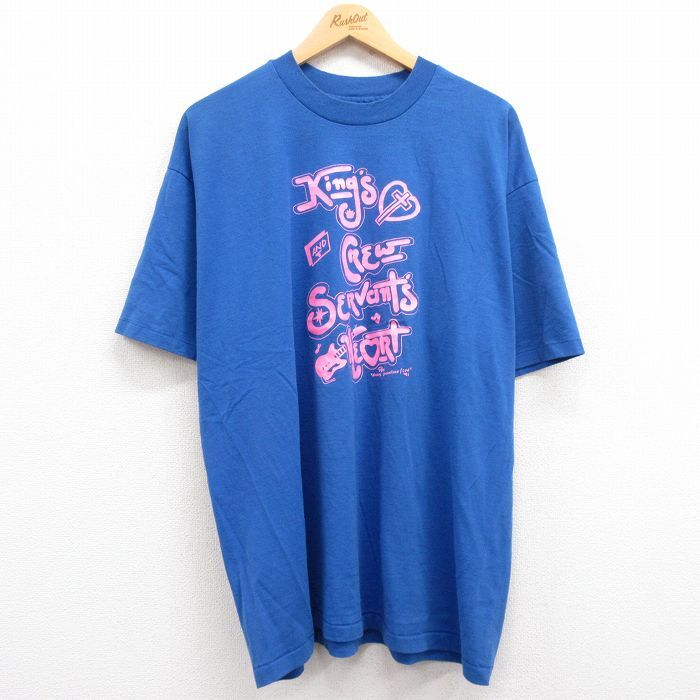 - XL/古着 ヘインズ 半袖 ビンテージ Tシャツ メンズ 90s Kings 大きいサイズ クルーネック 青 ブルー spe 24feb28 中古